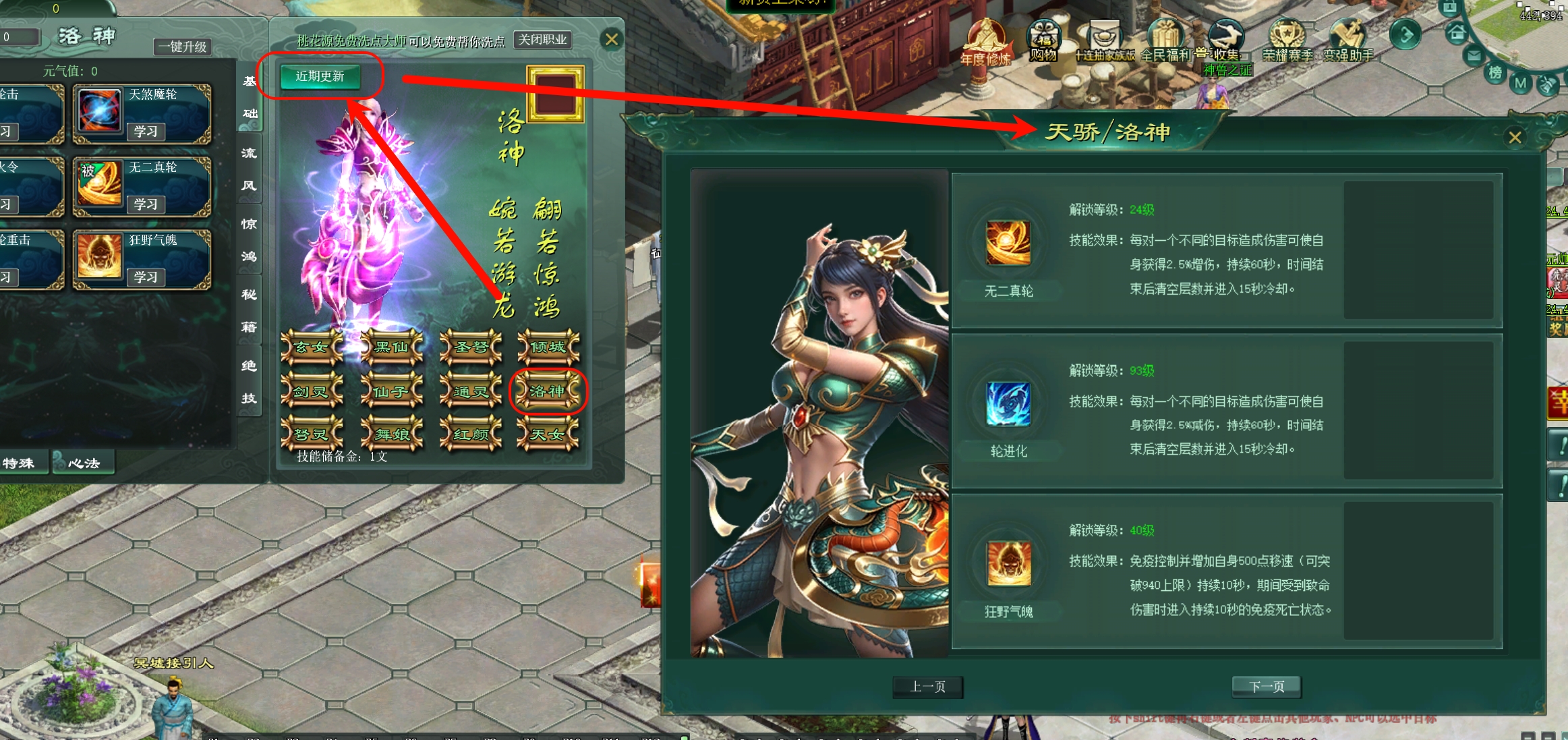 10、新增职业重铸详情说明,可进入“职业”界面,点击“近期更新”按钮查看: