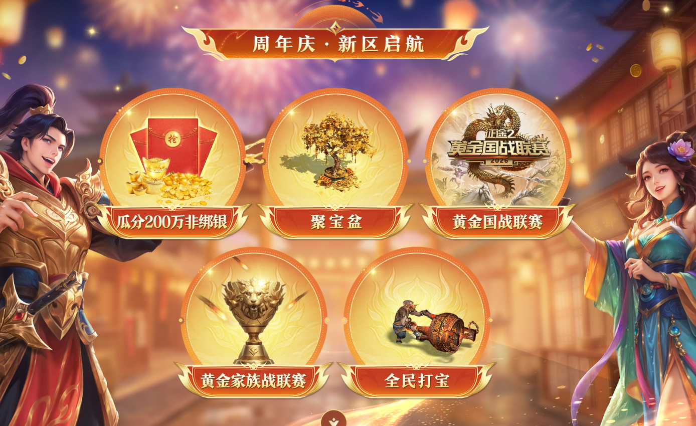 还记得当年通宵蹲BOSS的激情吗?4月24日,狂欢周年庆新区即将开启,瓜分总计200万非绑银,挑战BOSS海量非绑道具爆不停!家族/个人聚宝盆同步上线,达成指定等级领取极品好礼。黄金国战联赛十大金牌指挥激情对决,黄金家族战联赛角逐最强家族!