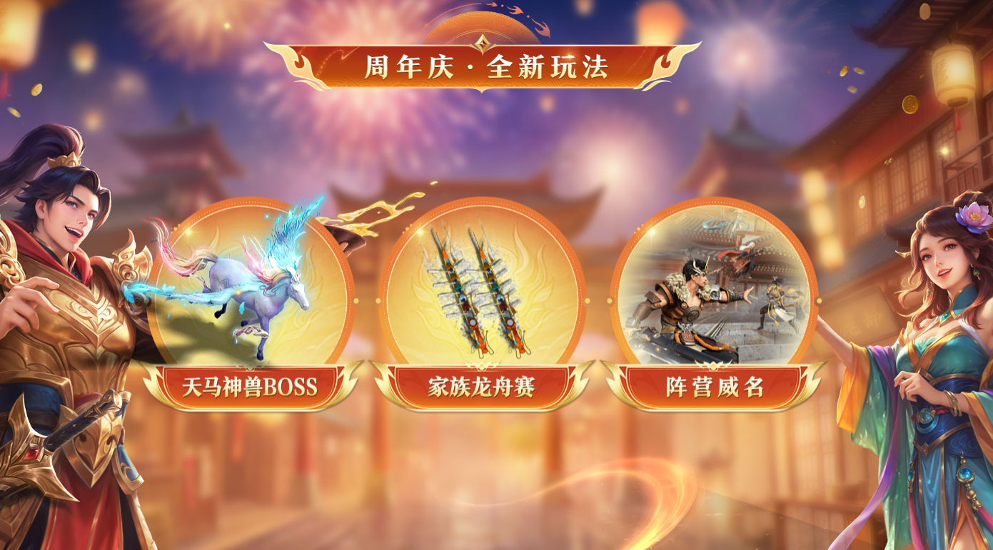 龙马神兽BOSS向你发起挑战,每一招都将考验你和小伙伴的默契配合,击败即有机会获得至臻坐骑·神兽龙马及碎片!家族元宝、段位赛奖励升级,每一场战斗都物超所值!家族龙舟赛即将开启大型竞速对决,与家族兄弟姐妹提前磨练配合,谁才是最强舵手?
