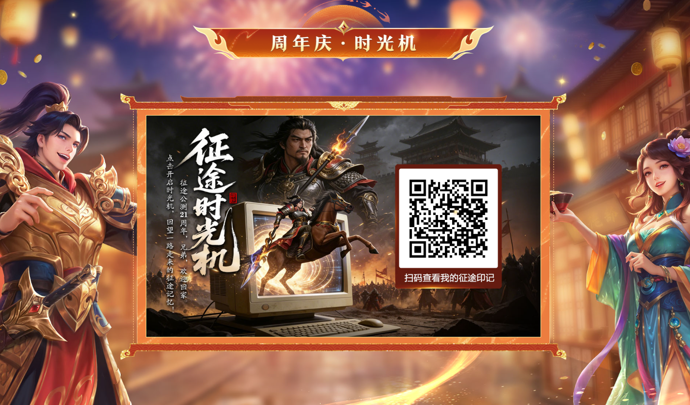 扫码开启“征途时光机”,穿越时空,重回激情燃烧的岁月,解锁独家征途记忆!