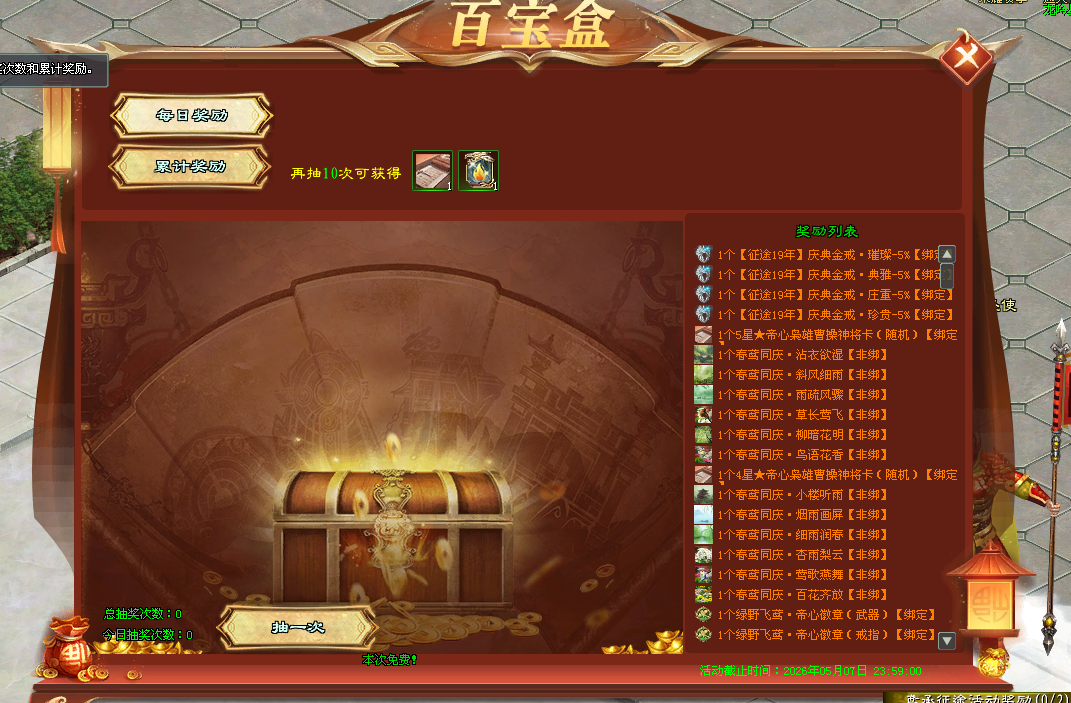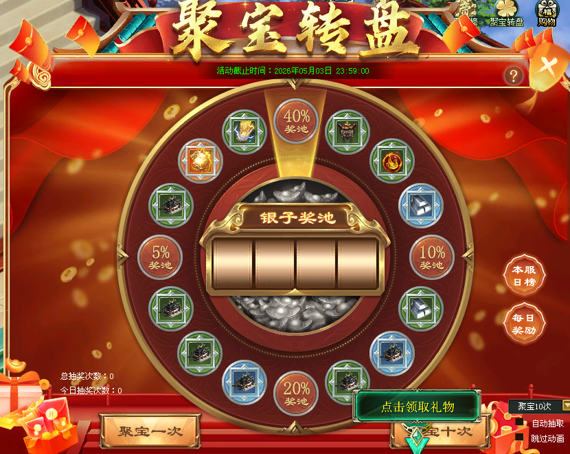 每次抽取都将向奖池内注入道具,每次抽取都有机会抽中奖池中的大奖!