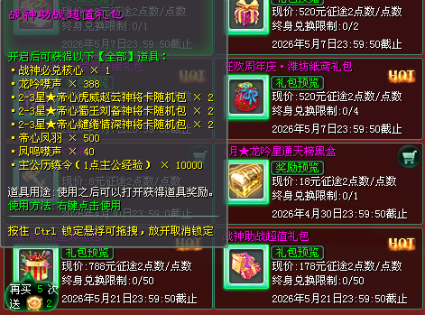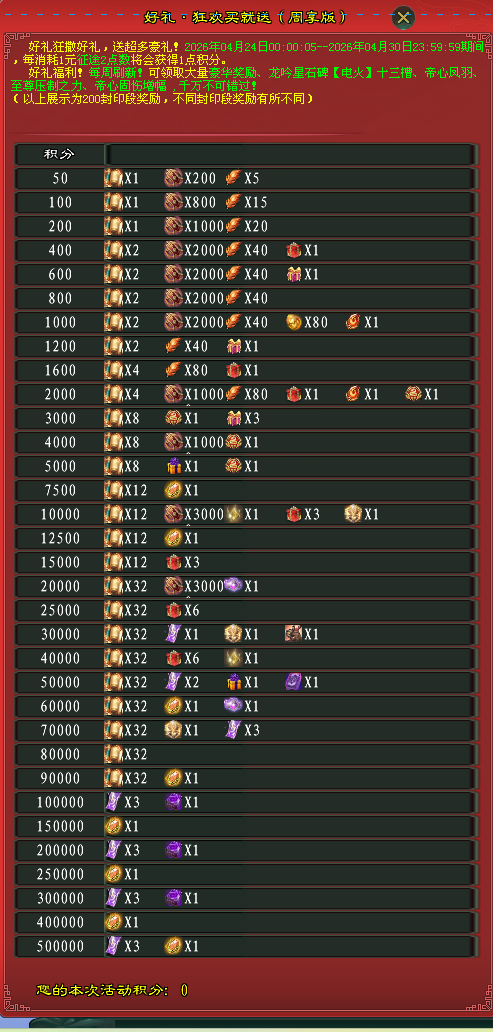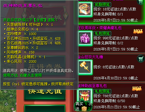 全民福利好礼买就送!达到指定积分,能够获得指定强力道具!