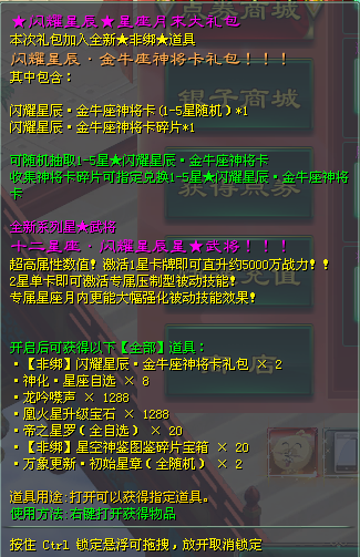 闪耀星辰·金牛座神将卡上线!十二星座·闪耀星辰星武将,具有超高属性数值!激活1星卡牌即可直升约5000万战力!2星单卡即可激活专属压制型被动技能!专属星座月内更能大幅强化被动技能效果!