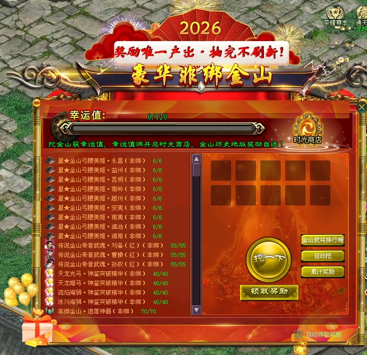 豪华非绑金山,奖励唯一产出,抽完不刷新!