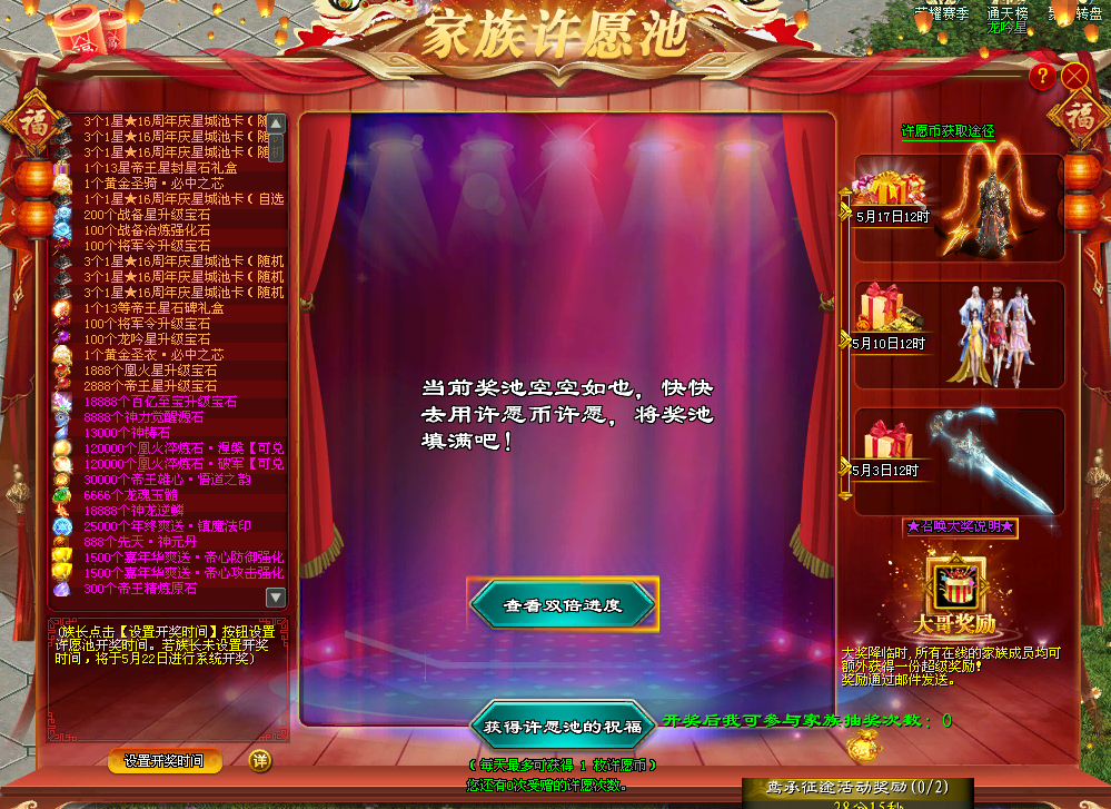 活动期间有机会获得吕布/赵云之心(自选)、13等帝王星石碑等丰富奖励。