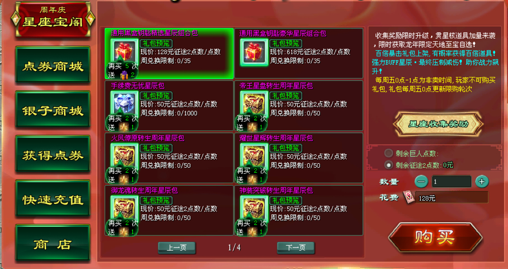 浩瀚星河赐福征途,星座宝阁每周五更新限购轮次!收集奖励限时升级,贯星核道具加量来袭,历史天地至宝部件自选中扩量4套至宝!