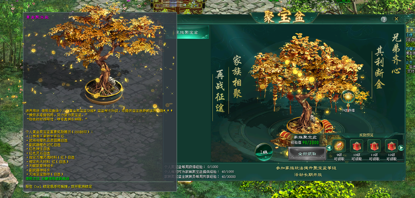 参与家族玩法,提升聚宝盆等级,即可领取11等帝王星转生直升石、龙吟星石碑【随机元素】11槽等海量珍稀道具。活动长期开放,极品道具稳稳领到手!