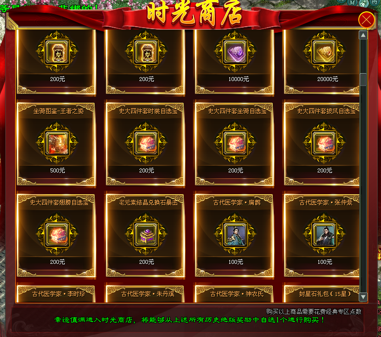 全服限购商店限量特供,数量有限售完即止,礼包内含大量经典专区点数和五行淬体丹等珍稀好礼,千万不要错过!