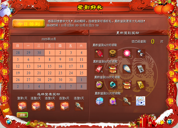 全新10月签到将于10月1日0点开启,持续累积签到可获得永久坐骑图鉴--兔兔连萌!