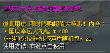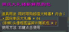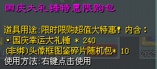 大礼锤限购礼包,购买可获得幸运大礼锤及非绑头像框图鉴碎片随机包