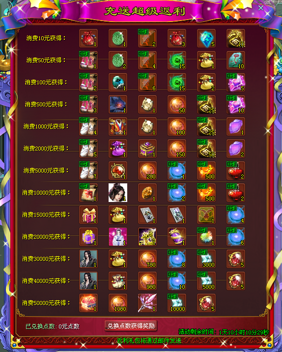 充送限时开启!消费指定金额大量珍稀奖励免费送,买得越多送的越多,千万不要错过!