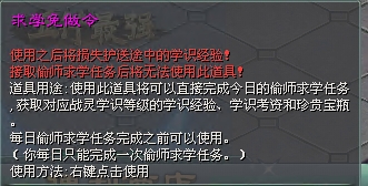 使用“求学免做令”可以直接完成一次偷师求学并获得对应奖励!