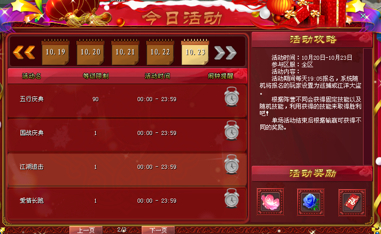 活动期间,19:05可报名参与江湖追击活动,报名玩家将随机成为“巡捕”或“江洋大盗”,并根据阵营不同获得固定技能及随机技能。利用技能获得胜利,每场获得根据输赢获得奖励!