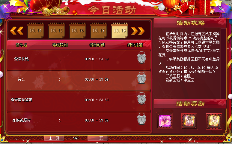 活动期间,每天19:00-19:45,在中立区将会出现一大片“玫瑰花丛”,玩家通过摘玫瑰可随机获得诗文的上下句(不绑定,可交易),凑齐同一篇诗文的上下句即可合成完整的诗文(右键点击合成),使用诗书即可随机获得诗会专属奖励!更有机会获得经典专区点数卡!