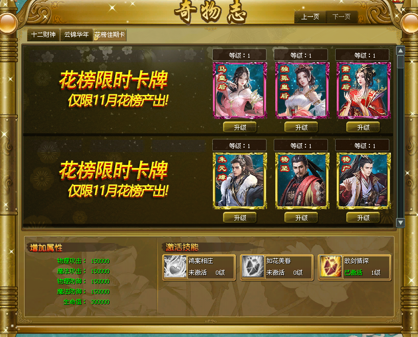 本期刮刮乐奖励内含花开时节神将卡,可提供900万攻击、防御加成,1800万血量加成与大量鉴定加成!