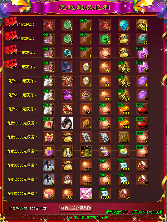 充送限时开启!消费指定金额大量珍稀奖励免费送,买得越多送的越多,千万不要错过!