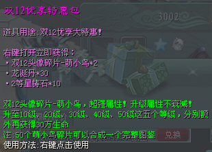 或可获得双12永久头像-萌小鸟、龙涎丹、4等星铸石、银子200锭、双12特惠礼品卡