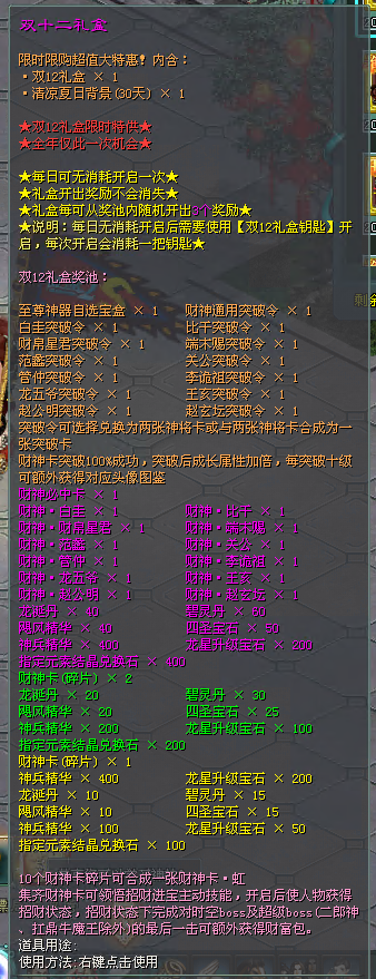 清凉夏日背景、至尊神奇百宝盒、千万攻防血神将卡尽在神秘双十二礼盒,集齐财神卡可领悟招财进宝主动技能!双十二绝版,错过等一年!