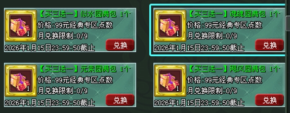 商会特供买三送一超值礼包,买满额外赠送非绑银子及图鉴宝箱,越买越划算,一定不能错过!