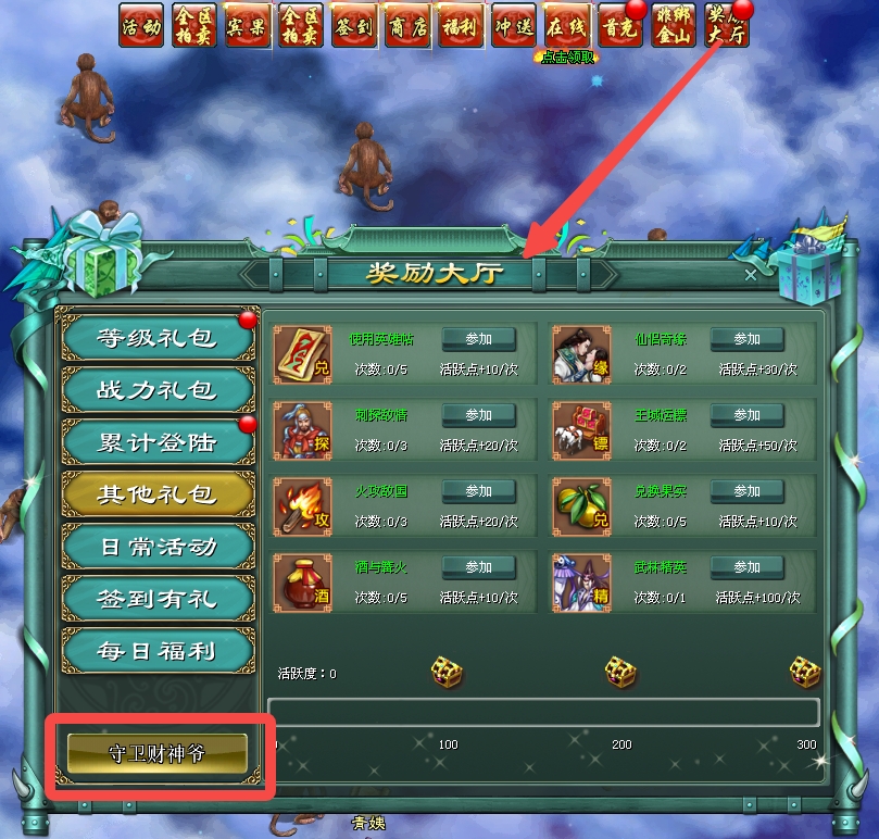 一、新春小游戏“守卫财神爷”上线,快来体验塔防无穷乐趣!家族团圆包开启了,记得喊上家族伙伴一起上线领礼包哦!