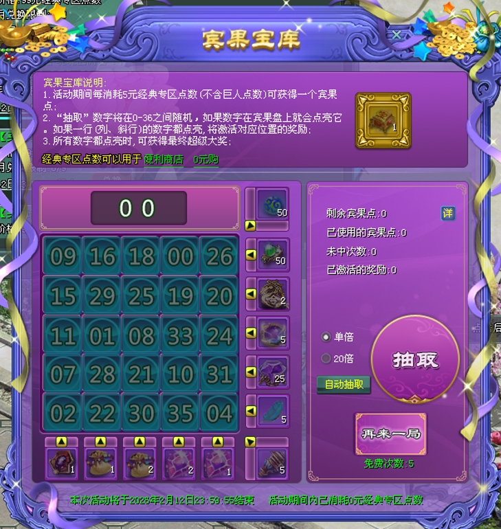 宾果宝库点亮数字形成一条直线(或对角线)即可领取对应奖励!