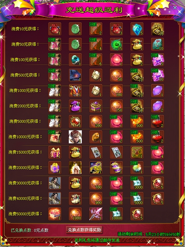 消费指定金额获取各样好礼!大量珍稀奖励免费送,买得越多送的越多,千万不要错过!