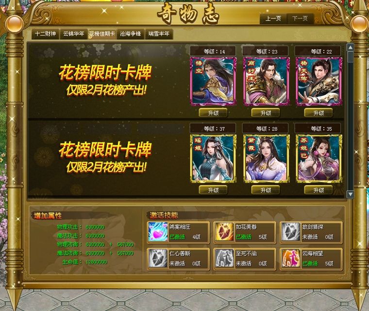 花榜限时卡神将卡展示