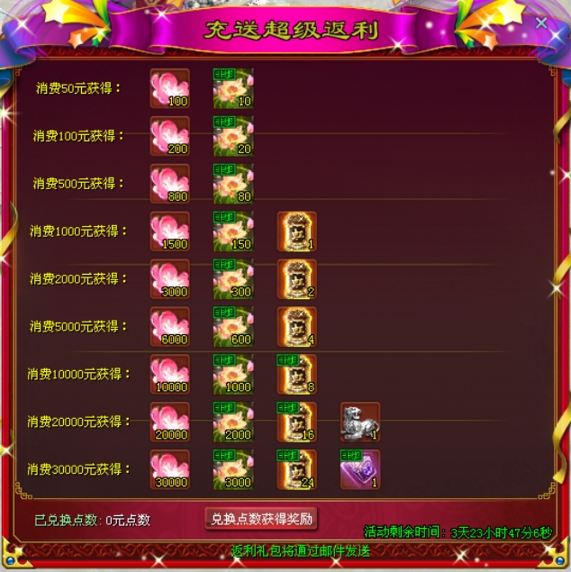 消费指定金额获取各样好礼!大量珍稀奖励免费送,买得越多送的越多,千万不要错过!