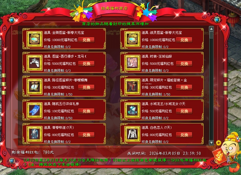 温馨提示:跨区角色无法收到红包雨奖励!