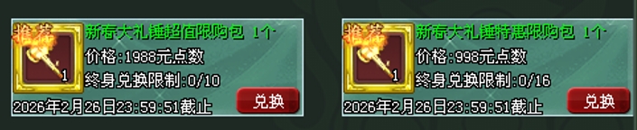 新春大礼锤限购礼包,购买可获得新春幸运大礼锤及非绑头像框图鉴碎片随机包