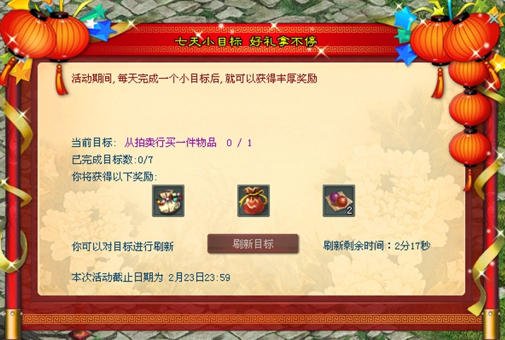活动时间:2月13日更新后-2月26日