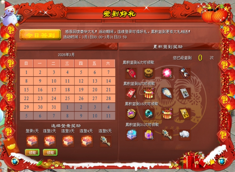 一、全新3月签到将于3月1日0点开启,持续累积签到可获得永久坐骑图鉴!家族团圆包开启了,记得喊上家族伙伴一起上线领礼包哦!