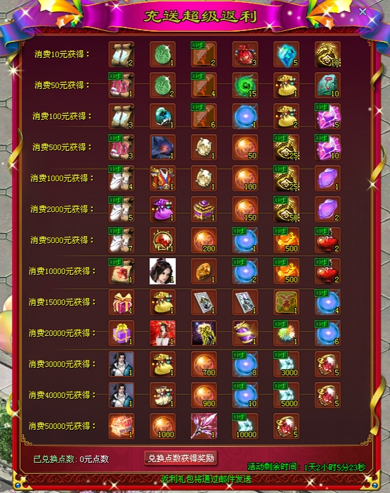 消费指定金额获取各样好礼!大量珍稀奖励免费送,买得越多送的越多,千万不要错过!