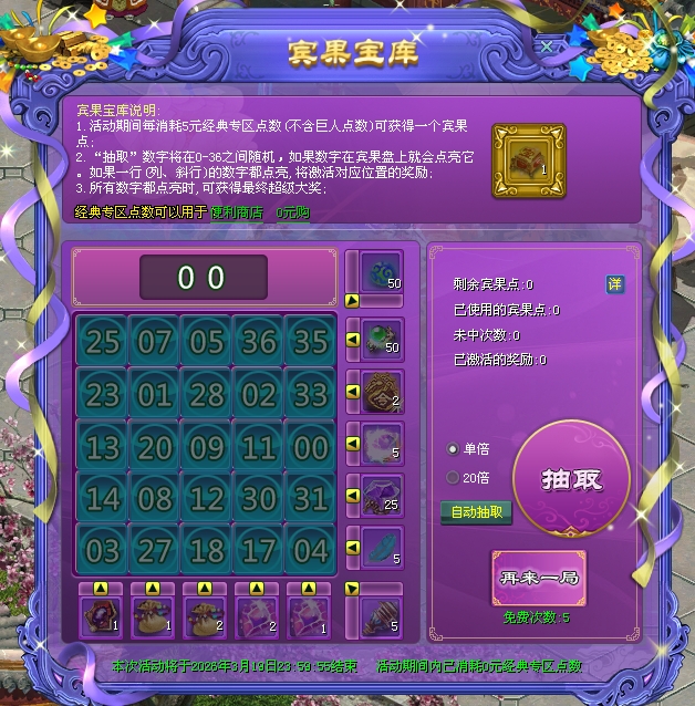 宾果宝库点亮数字形成一条直线(或对角线)即可领取对应奖励!