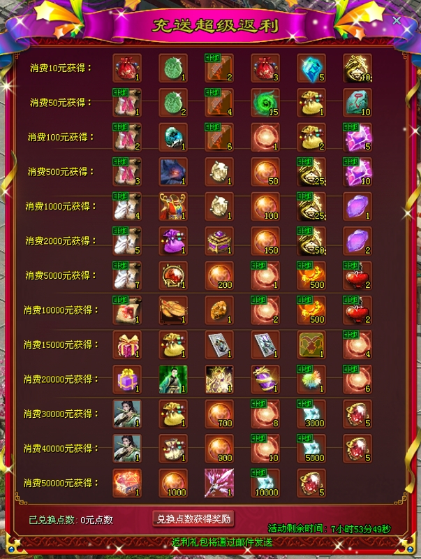 消费指定金额获取各样好礼!大量珍稀奖励免费送,买得越多送的越多,千万不要错过!